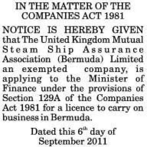 United Kingdom Mutual Steam Ship Assurance Association Bermuda Limited The Royal Gazette Bermuda News Business Sports Events Amp Community