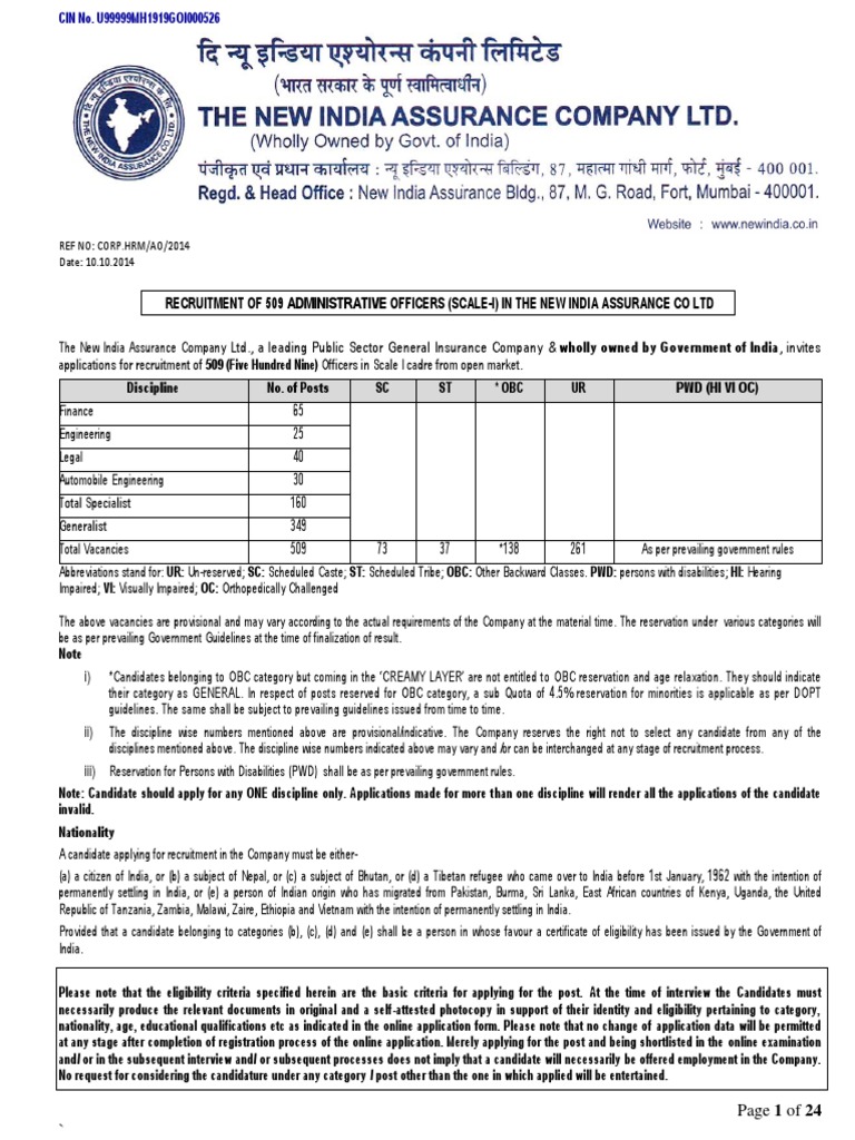 New India Assurance Ad 1 2014 Pdf Image Scanner Identity Document