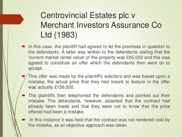 South African investment company Sanlam is to purchase Merchant Investors Assurance from Allianz UK. LVanderwaltmerchant-investorscouk Contact Chief Executive. The plaintiff might be able to negate any binding agreement by showing that the defendant ought to have known that the plaintiff.