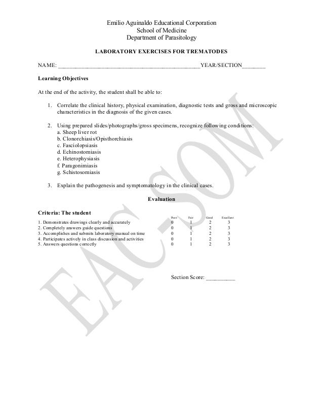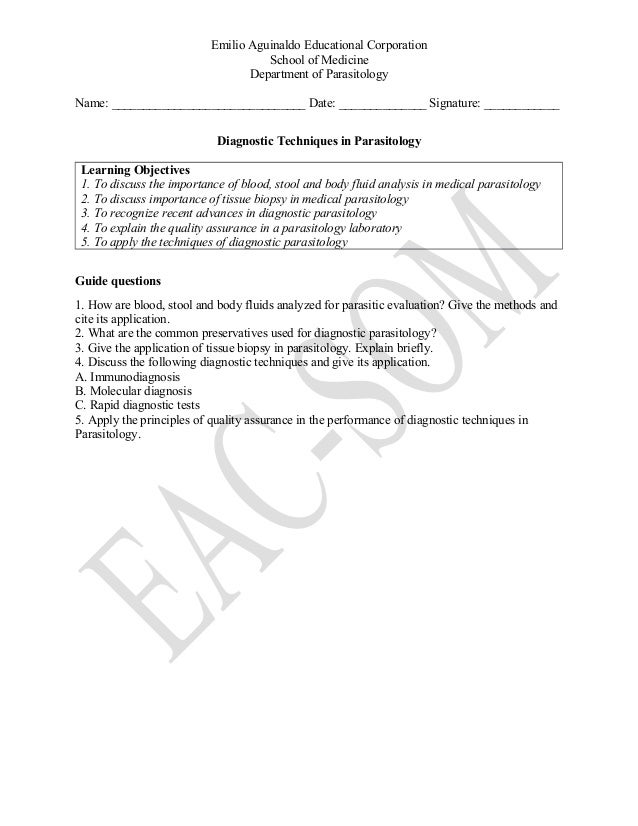 Laboratories laboratory safety and quality assurance programs. The Parasitology Laboratory is open on a weekly basis from Monday to Friday. Preparation of the schedule and conduct periodic.